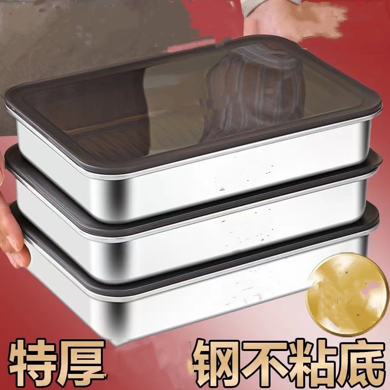 【爆款/不粘】大容量不锈钢饺子盘保鲜盒冰箱收纳盒托盘方盘