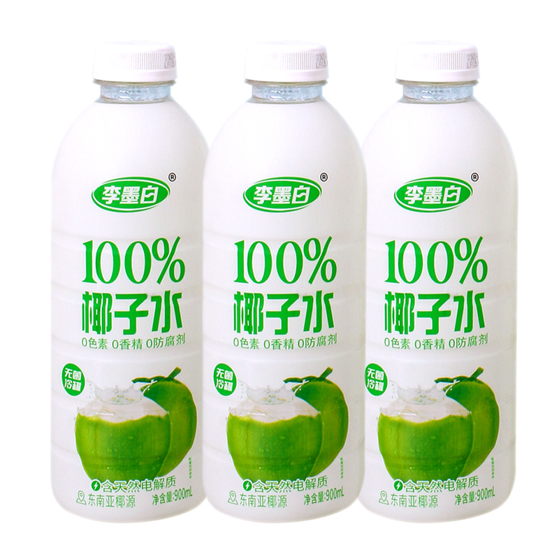 李墨白椰子水100%椰子汁饮料含电解质饮品900ml2瓶装整箱轻上网红