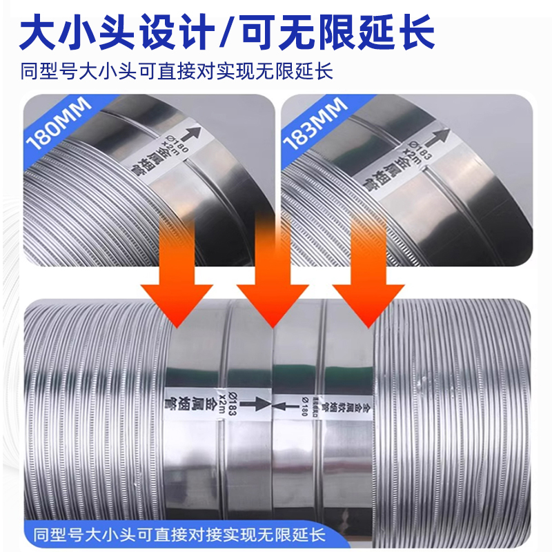 油烟机排烟管大小头不锈钢排气管厨房变径纯加厚排风管抽烟机管道