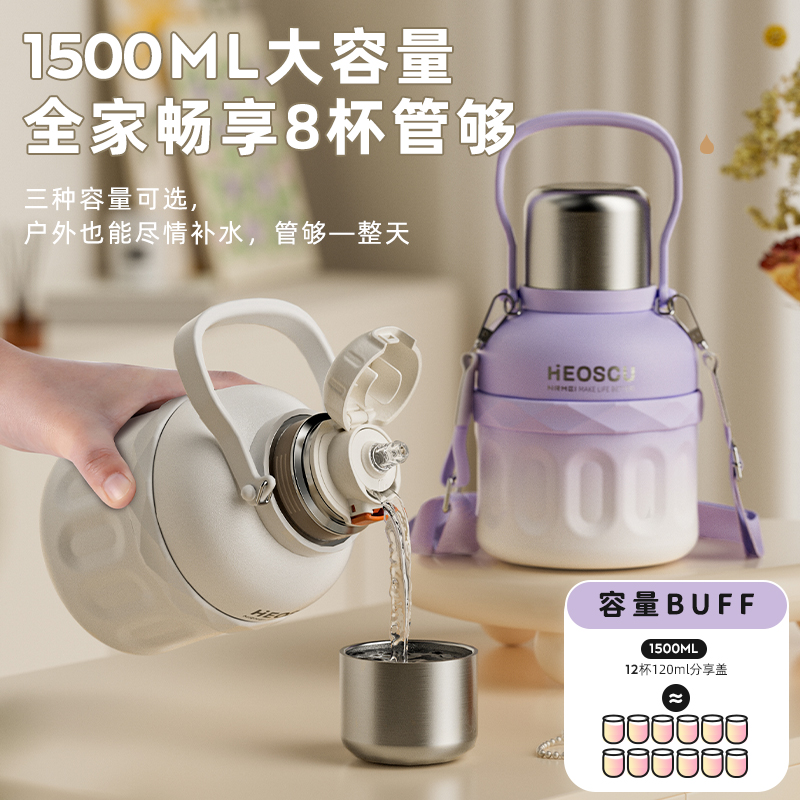 GOOM保温杯2025新款情侣高颜值大容量吸管水杯子提绳生日老师礼物