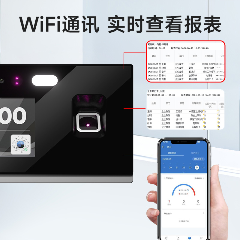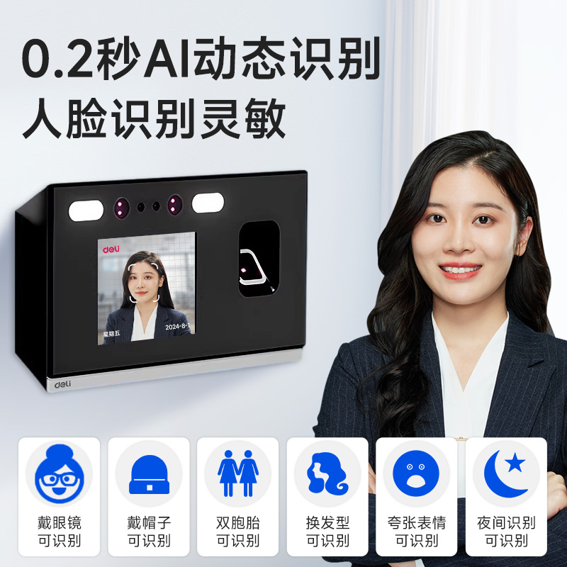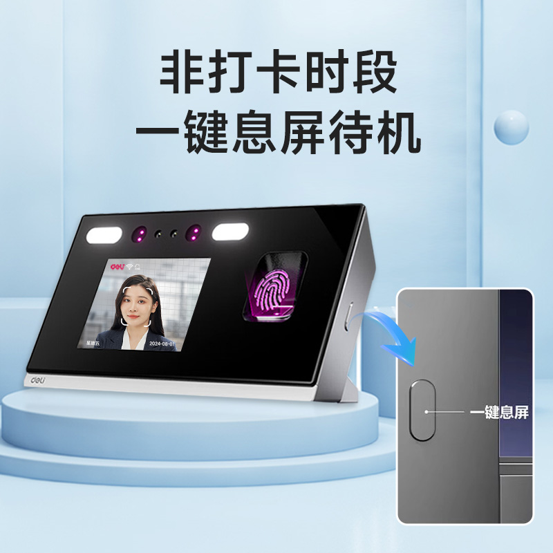 【得力联合款】企业微信人脸识别考勤机指纹打卡机员工上下班考勒机刷脸签到机工地手机面部识别打卡考勤机