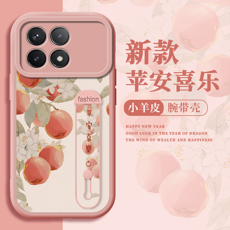 柿柿如意适用红米k70手机壳小米k70pro小羊皮k70e全包redmi防摔新款女款腕带支架高级中国风艺术简约保护软套