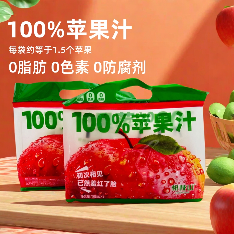 100%苹果汁0脂肪0蔗糖饮料口感酸甜夏日饮品便携装儿童解渴果汁