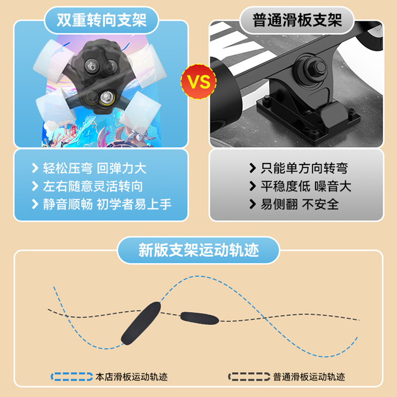 儿童陆地冲浪板6一12刷街成人初学者男路冲免蹬地10一15岁滑板车