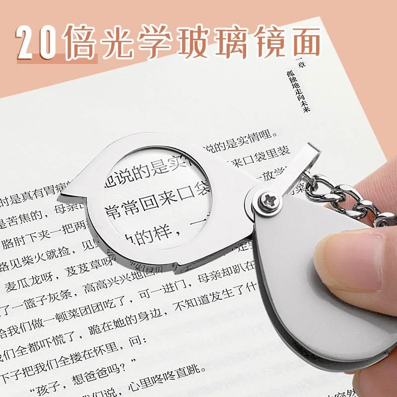 老花眼放大镜迷你放大高清口袋式放大镜可携式折叠活柄钥匙扣皮套