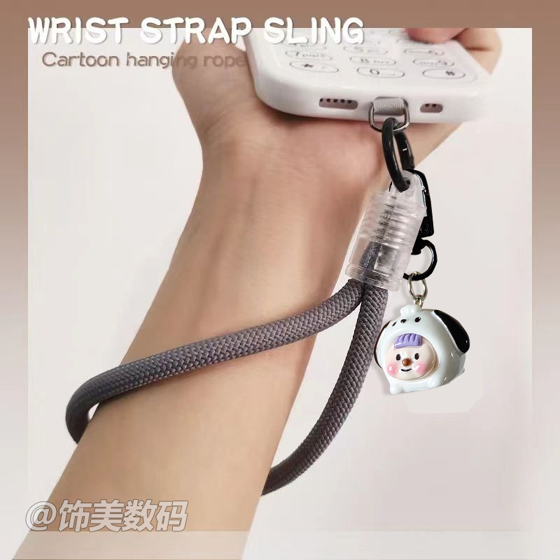 加粗腕带防丢失编织手机挂绳ins时尚手腕绳卡通吊坠夹片手机壳吊绳男女同款时尚百搭高品质简约不影响充电