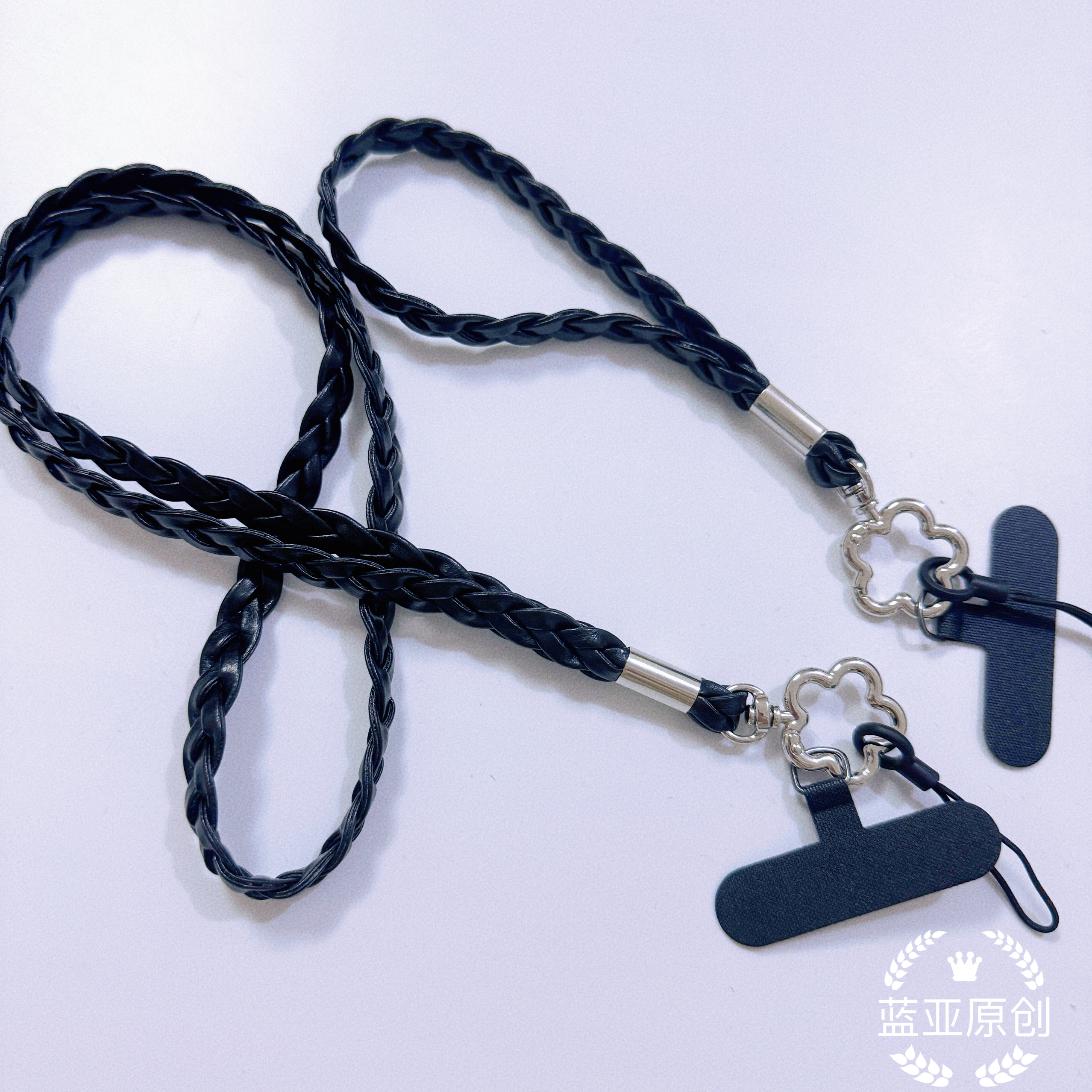 柔软pu皮麻花编织手机挂绳复古风纯色挂脖绳个性手机斜挎带手腕绳