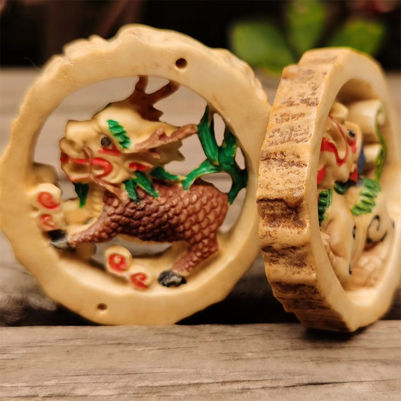鹿角盘镂空雕刻民族风工艺品佛珠手串吊坠DIY配饰吊牌配饰手把件