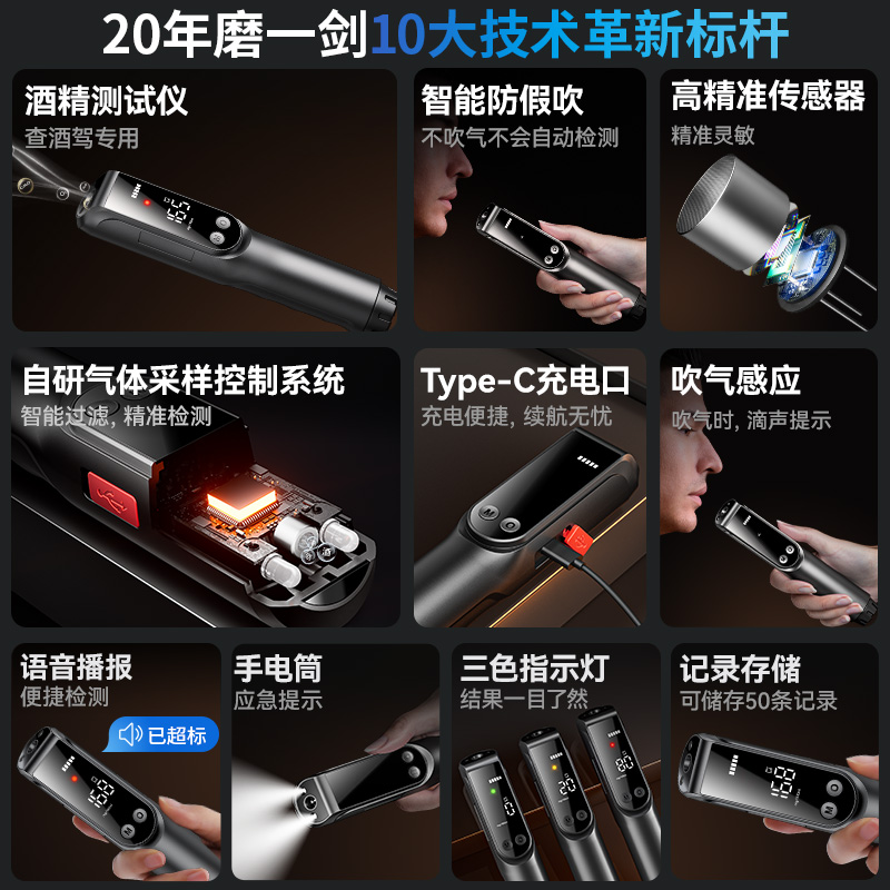 酒精测试仪吹气式酒驾交通专用兆为检测仪查酒驾专用测酒仪测量仪