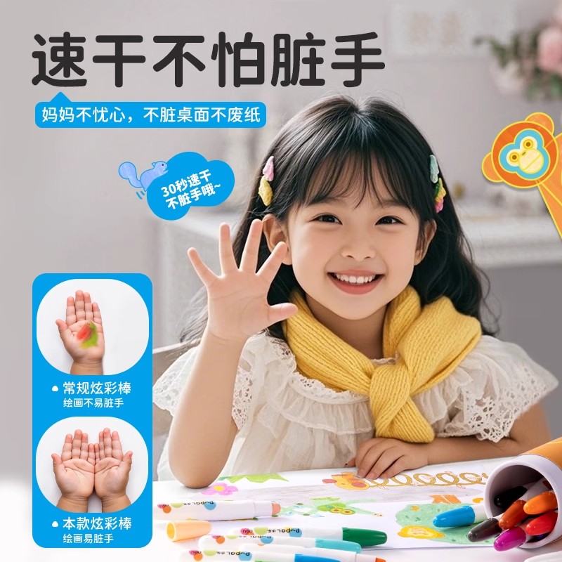 得力步乐小胖丁油画棒速干旋彩棒丝滑不脏手蜡笔30s速干儿童幼儿
