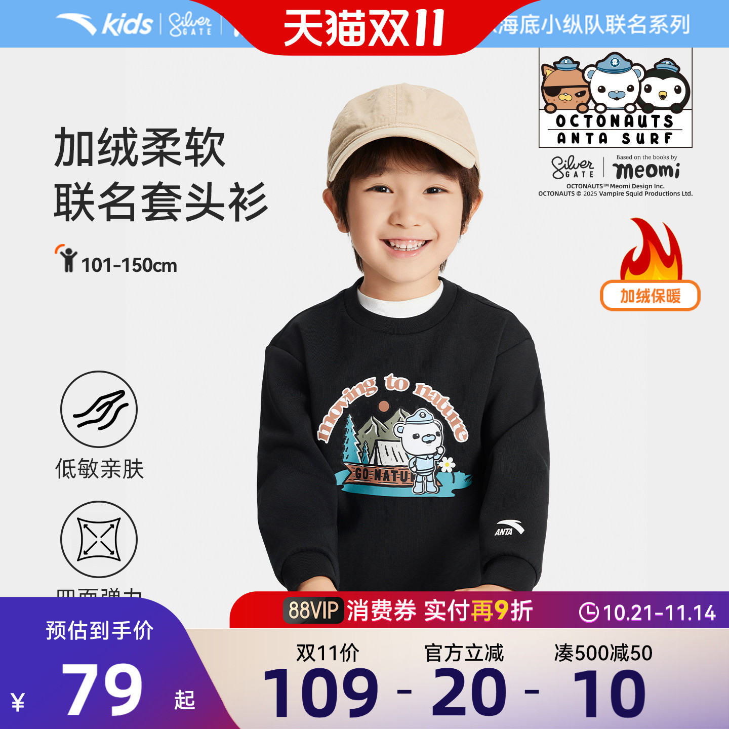 海底小纵队IP安踏儿童加绒卫衣小童宝宝上衣2025年秋冬保暖长袖