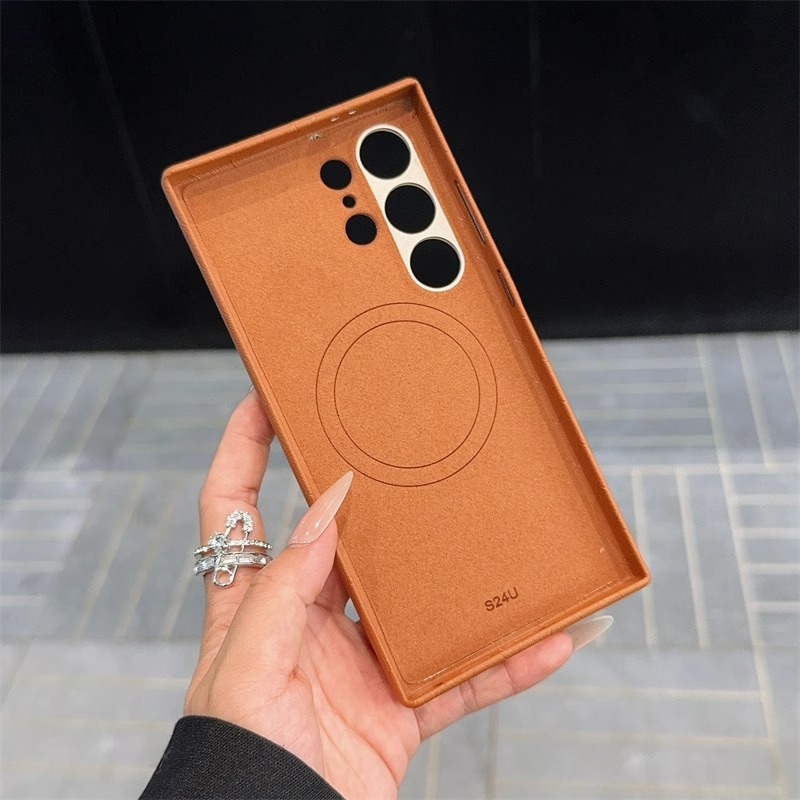 内置磁吸素皮适用三星Galaxy S24 Ultra手机壳新款s24 +手机壳S23 Ultra保护套24 puls皮纹23+男士女生纯色新