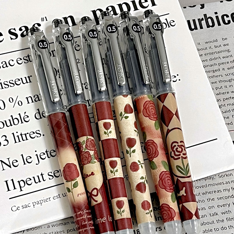 pilot百乐正品文具P50中性笔0.5mm黑色日系直液式中学生高考专用考试笔p500签字笔水笔联名干枯玫瑰限定笔