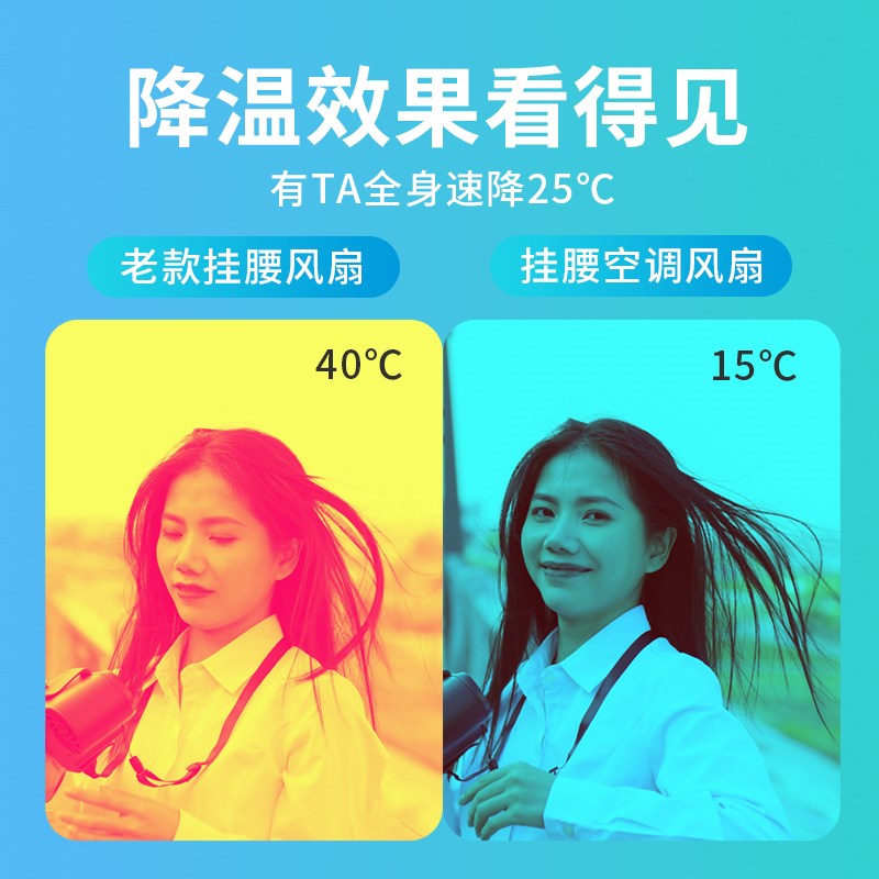 挂腰风扇随身户外工地挂脖腰挂电风扇大风力充电S蓝牙空调制冷便