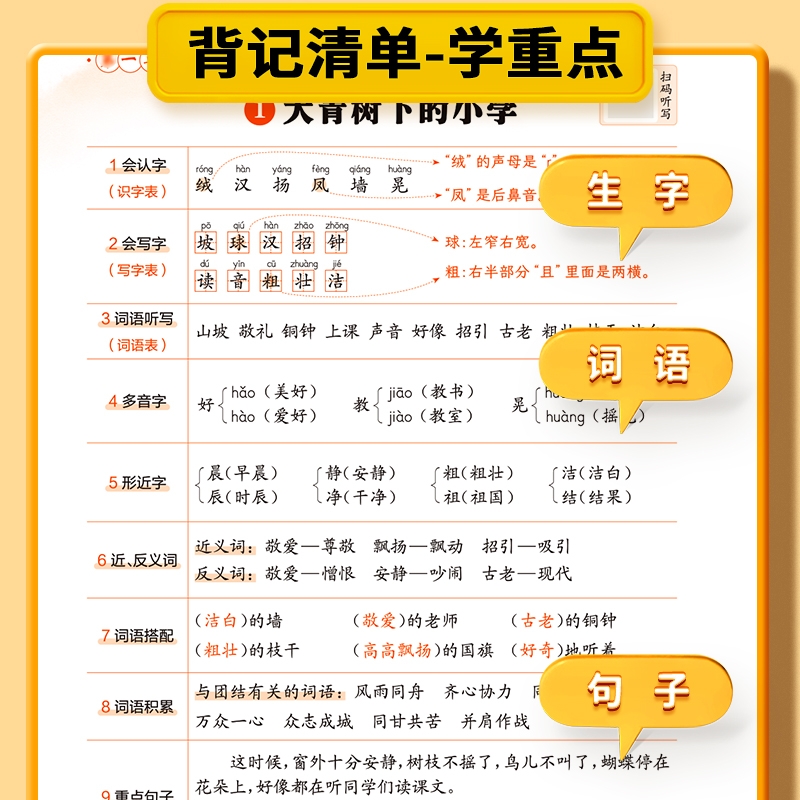 【易蓓直营】小学语文背记清单睡前默写同步专项训练人教版课本生字词语古诗文一二三四五六年级上下册考点梳理课堂预复习教辅资料