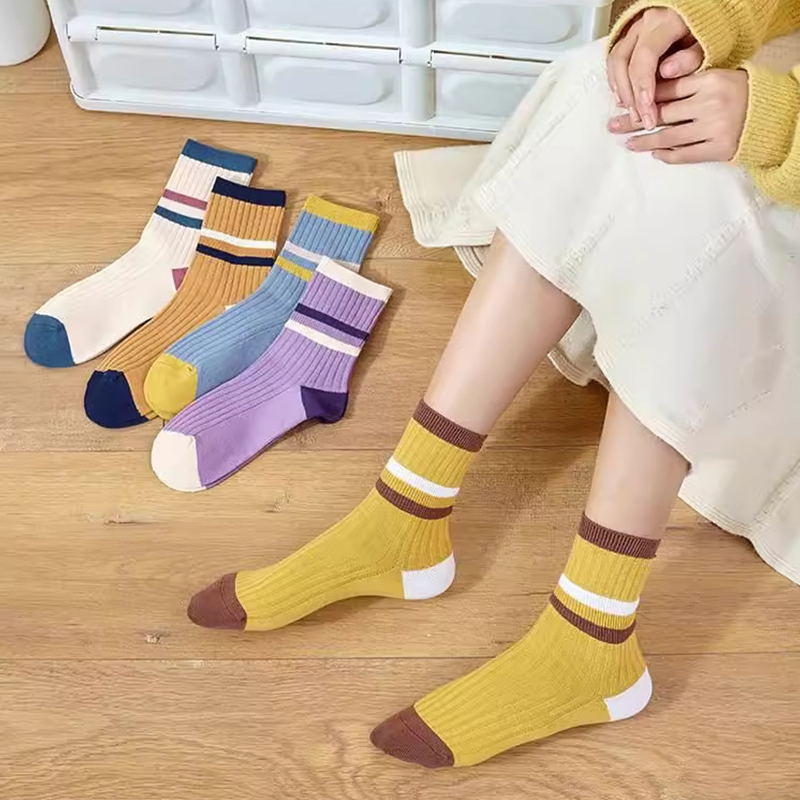 时尚条纹袜子女中筒袜简约学院风 3双装起多规格