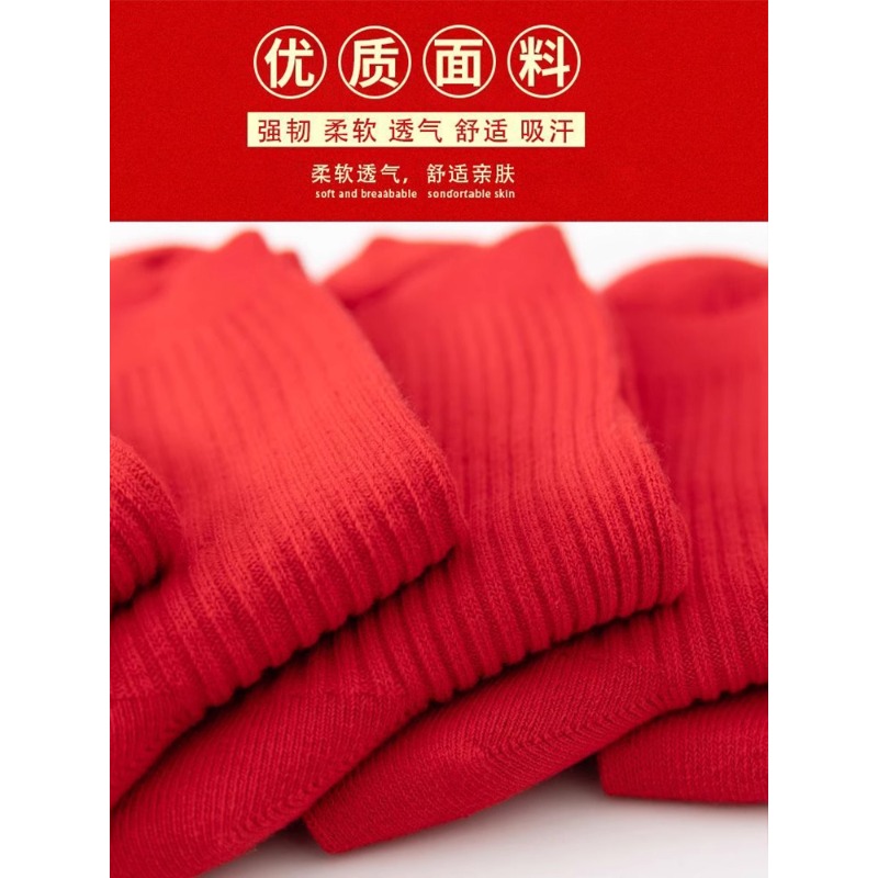 红袜子本命年纯棉男女秋冬款蛇年中筒袜防臭透气结婚情侣一对长袜