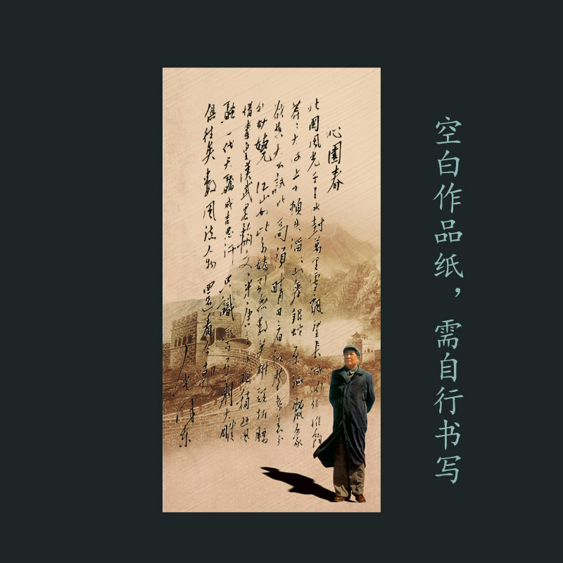 四尺整张对开竖式毛体作品宣纸半生熟毛主席头像沁园春满江红长城
