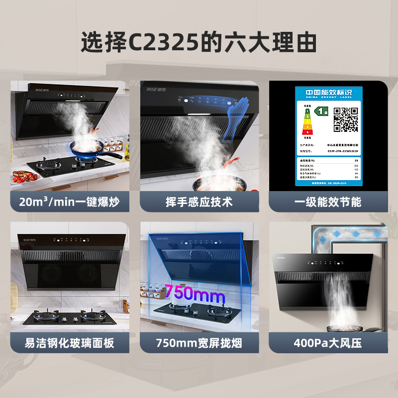 樱雪2325抽油烟机厨房家用出租房顶侧大吸力国补以旧换新补贴套装