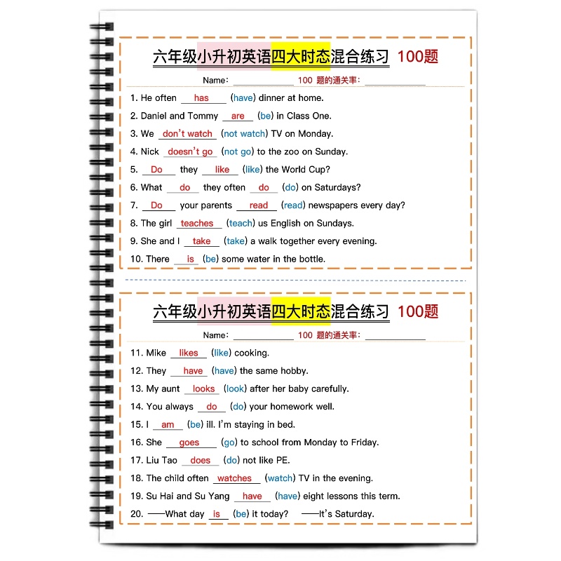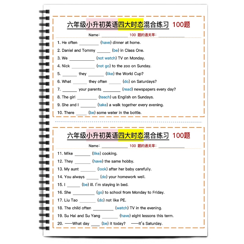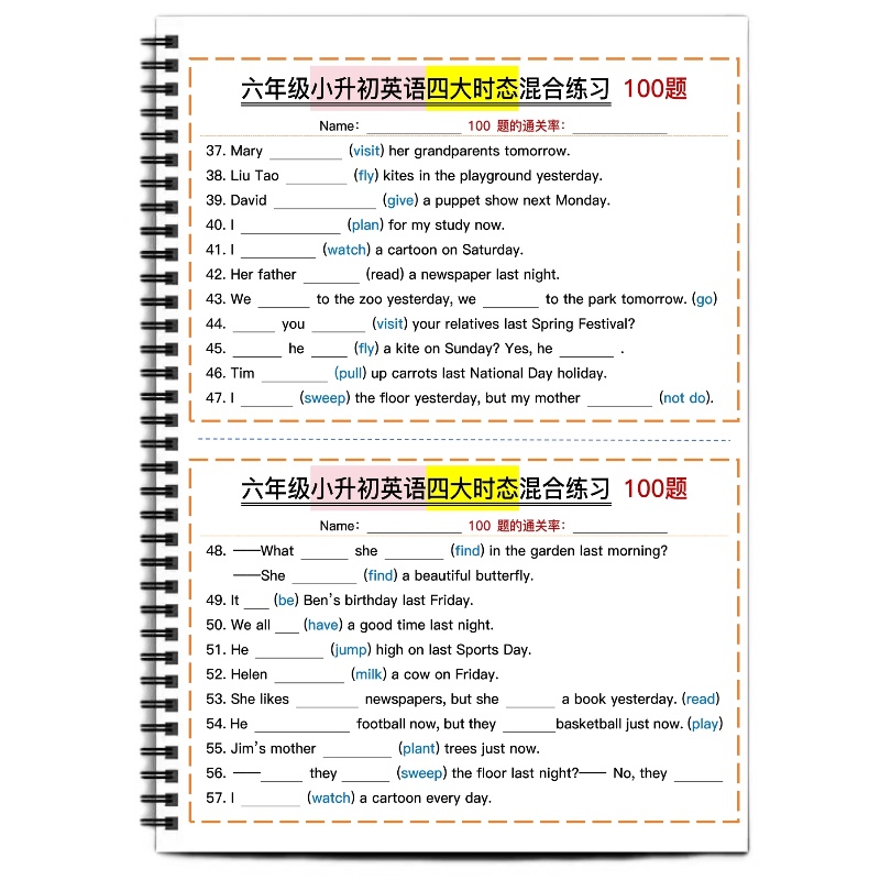 六年级小升初英语四大时态混合练习含答案英语语法专项练习般现在时过去时将来时进行时小升初必刷题