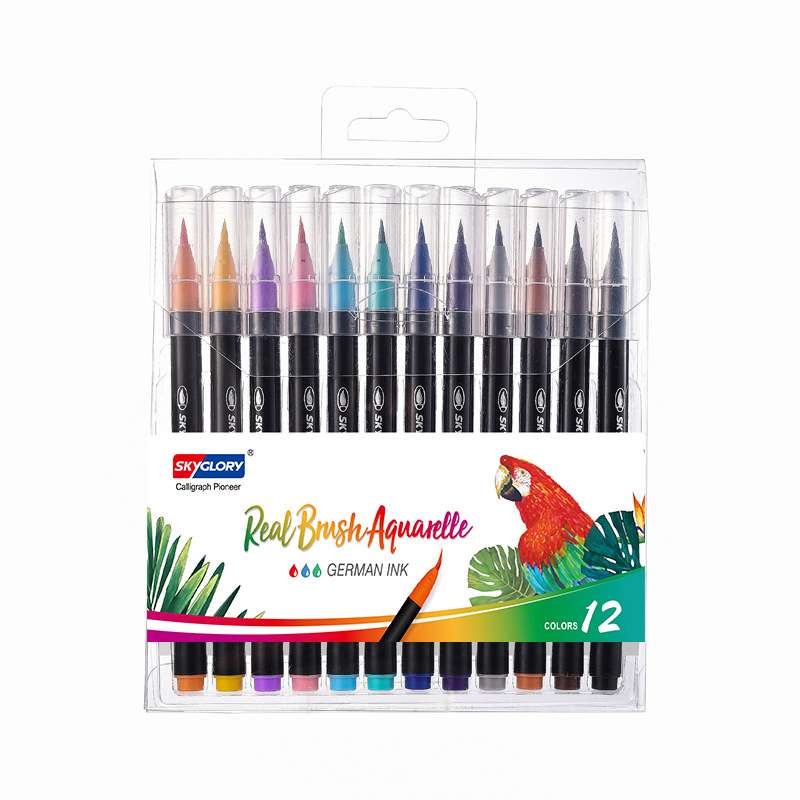 天辉水溶性绚丽水彩笔跨境纤维软头可水洗马克笔彩色学生毛刷画笔