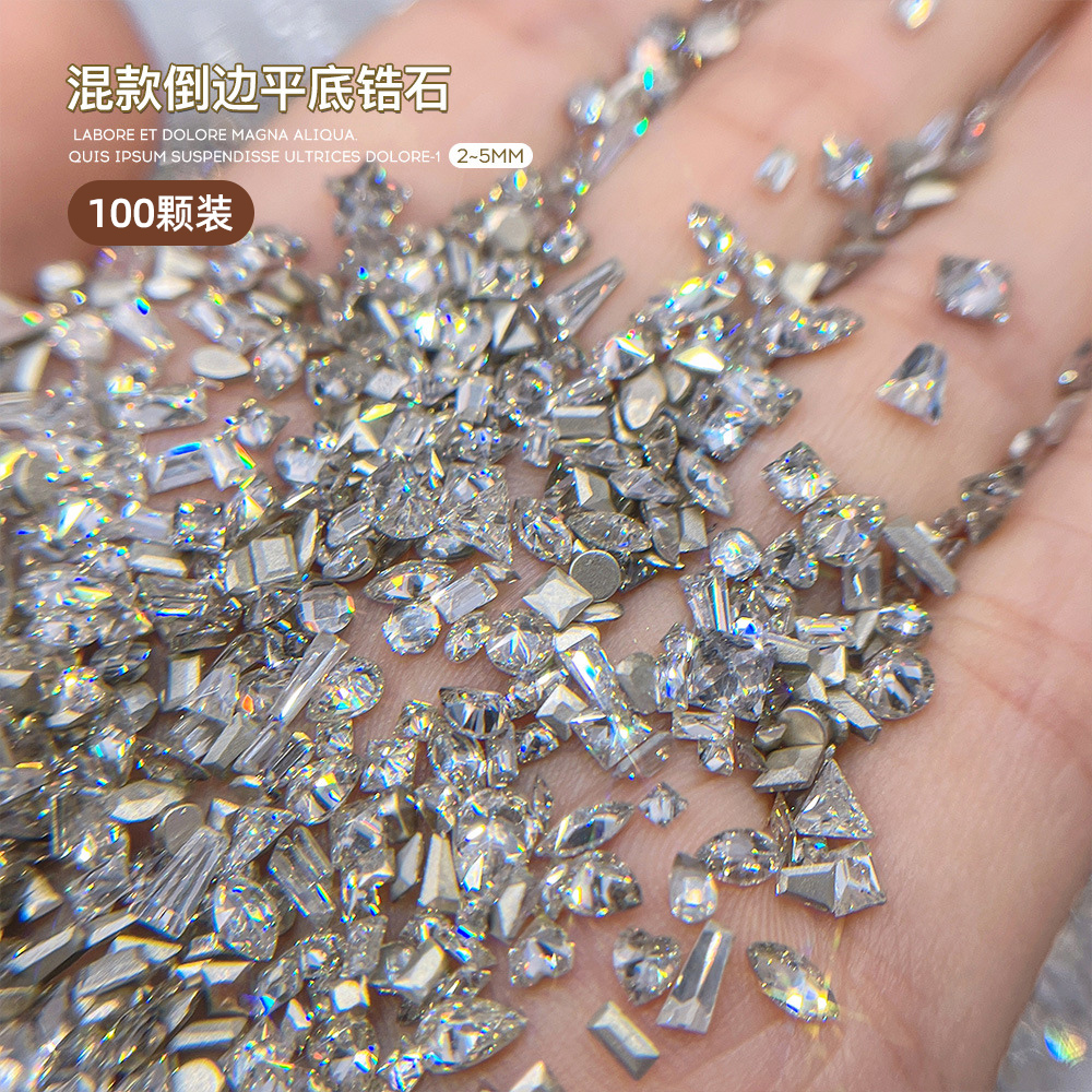 锆石迷你平底异形钻美甲饰品超闪大小混装倒边马眼肥方指甲装饰品