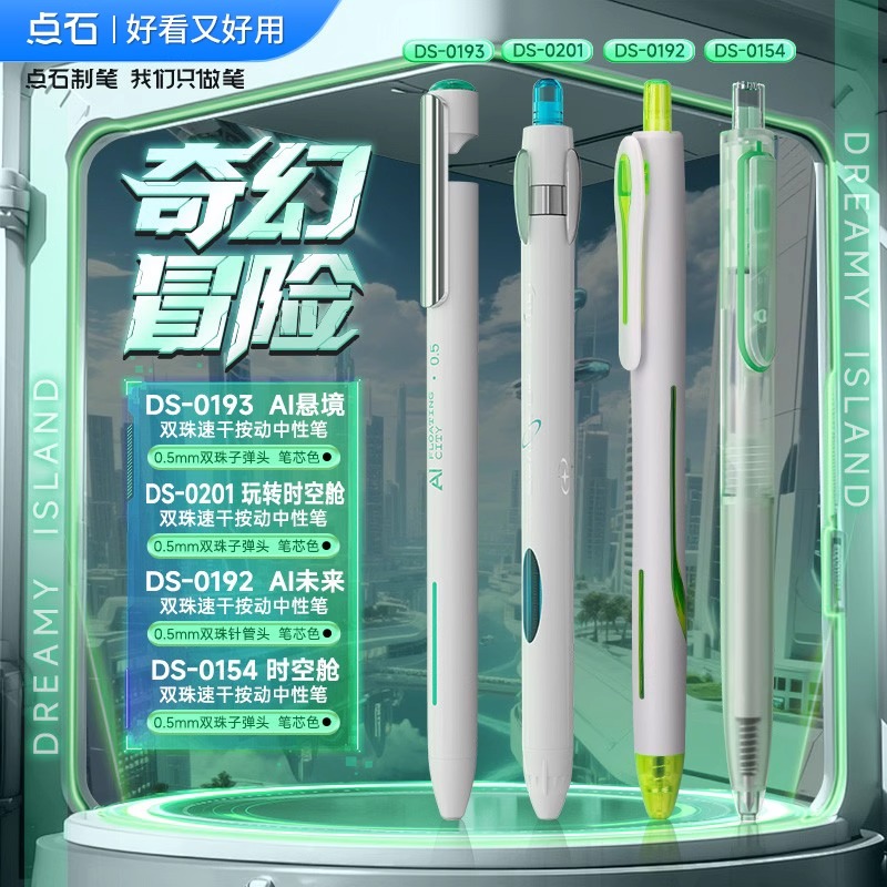 【新品】点石制笔天空之城时空舱中性笔组合套装AI悬境悬浮岛按动速干子弹头中性笔高颜值学生刷题考试专用笔