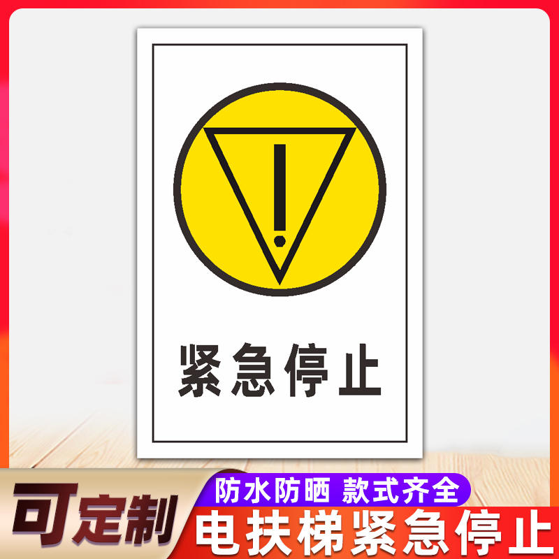 电扶梯紧急停止按钮标识急停按钮开关安全警示牌温馨提示贴纸非警勿动发生意外请按下应急开关标示指示牌