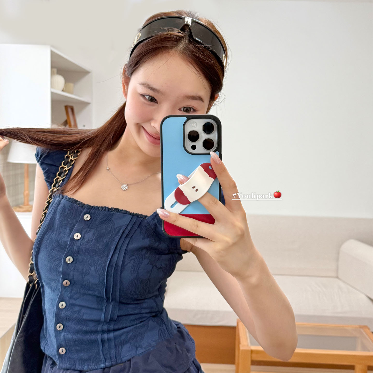 由里公园ins小众韩系撞色苹果创可贴支架15适用16pro苹果16ProMax手机壳iPhone16全包14新款14Promax保护套女