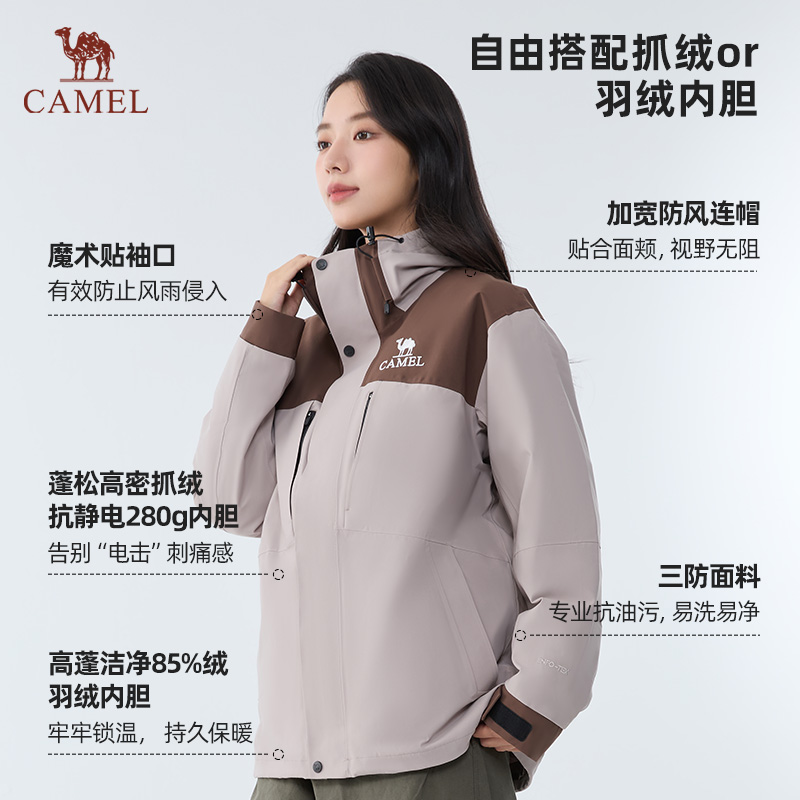Camel骆驼户外三合一冲锋衣保暖夹克外套防风登山服露营登山滑雪