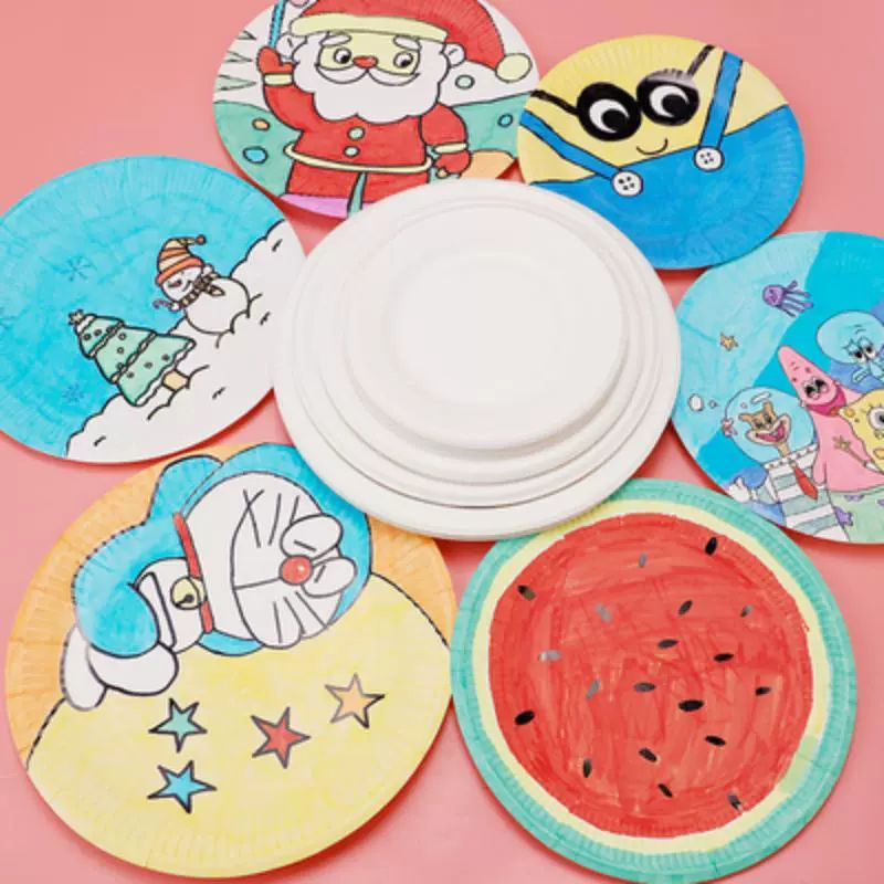 可降解一次性纸盘幼儿园餐具手工绘画盘加厚蛋糕盘幼儿园diy纸盘