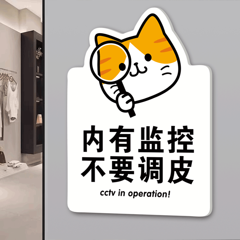 监控区域警示牌您已进入24小时监控标识牌卡通创意提示牌内有监控保持微笑提示贴亚克力墙贴告示牌警告标语牌