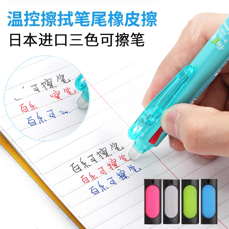 日本进口Pilot百乐可擦笔frixion多功能三色按动多色可擦中性笔三合一热可擦摩擦水笔0.38/0.5摩磨易擦