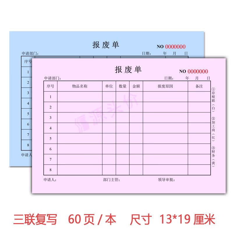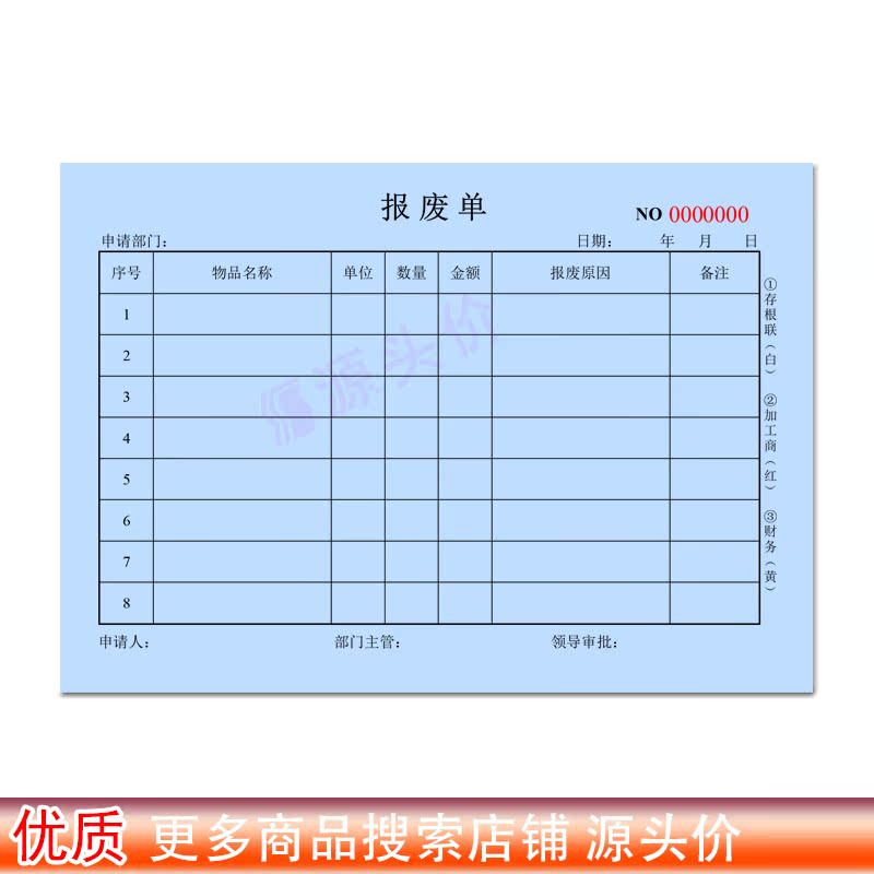 三联报废单单位部门物品申请废弃原因数量单据凭证审批单子定制做