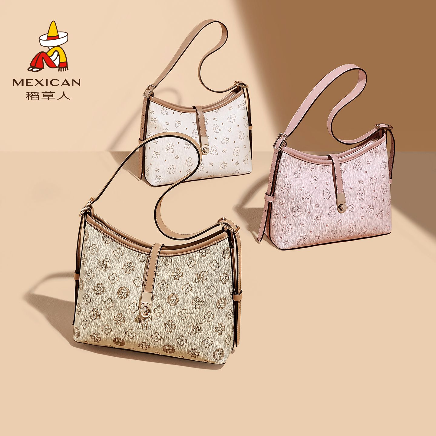 稻草人包包女新款2025夏季实用百搭斜挎包老花通勤单肩小众腋下包