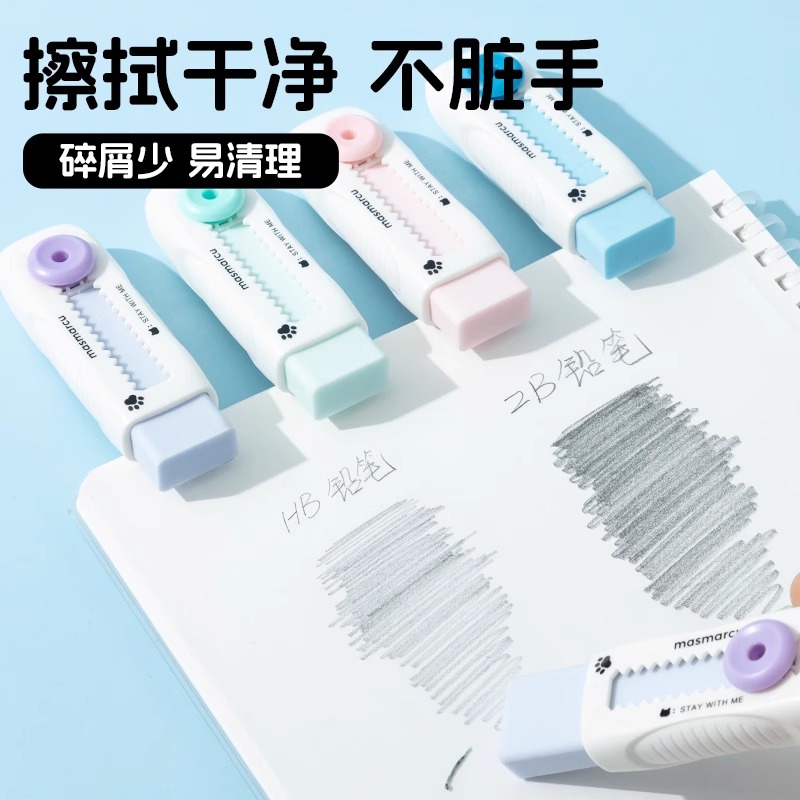 晨光全是喵系列推拉橡皮擦小学生少屑干净不易留痕像皮幼儿园儿童安全擦字成线象皮擦可爱猫咪素描绘画