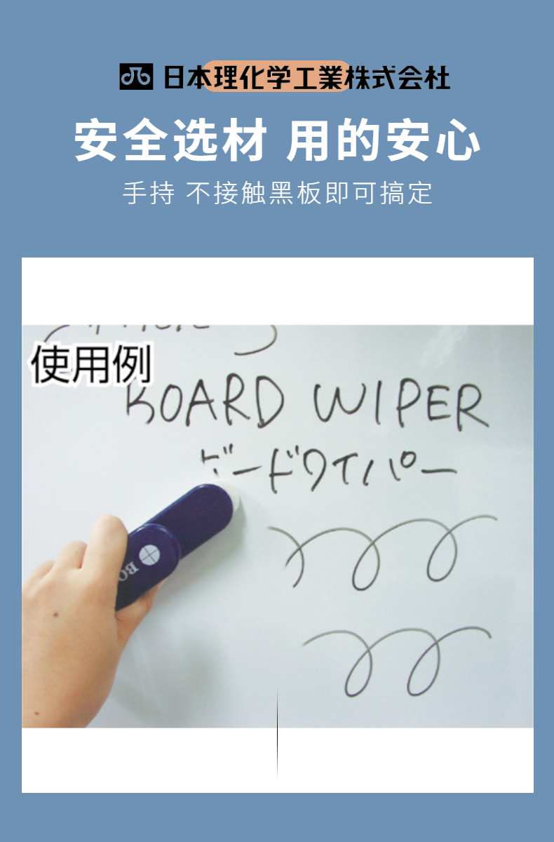 日本进口理化学工业手持把握黑板擦白板擦蓝色白色可替换替芯BW-1