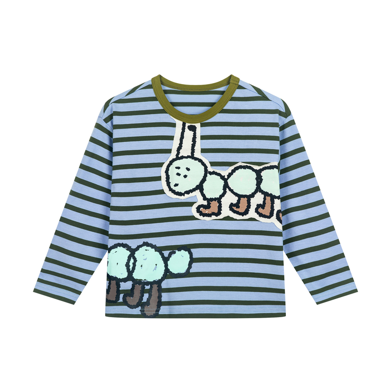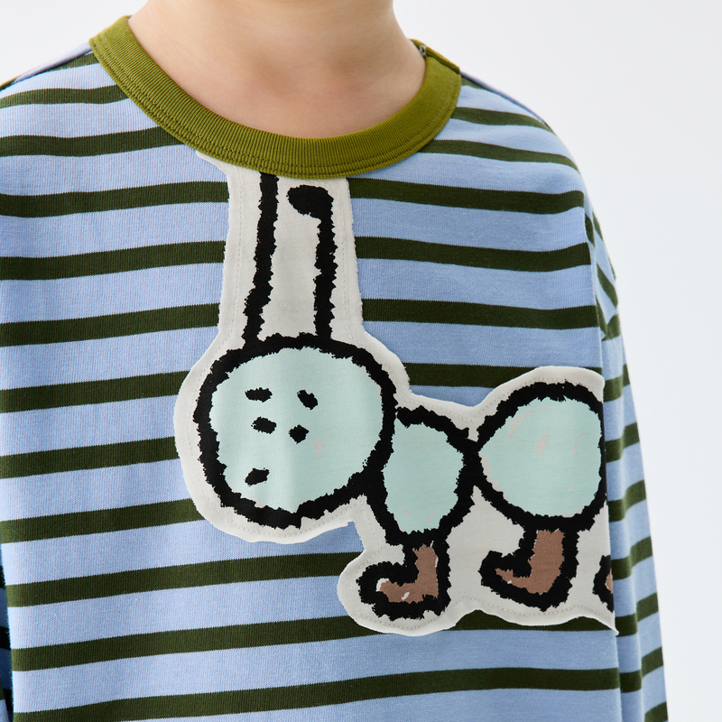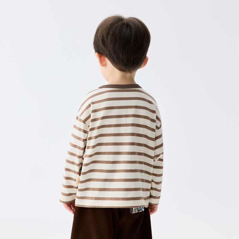 【蚂蚁搬家T】马拉丁童装25秋新款条纹印花撞色领长袖T恤