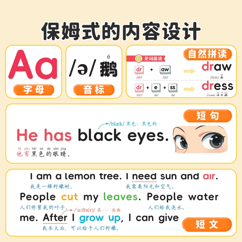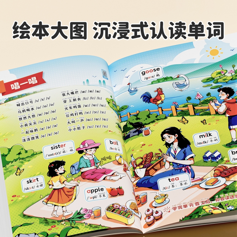 小学零基础学英语音标和自然拼读自学入门教材一本通小学生趣味速记单词手册发音拼读法书26个英文字母短句短文单词记背神器汇总表