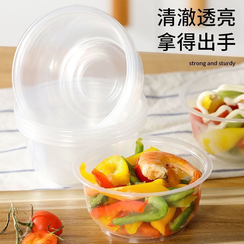 一次性碗塑料家用小碗套装圆形带盖饭盒打包餐盒餐具冰粉商用碗筷