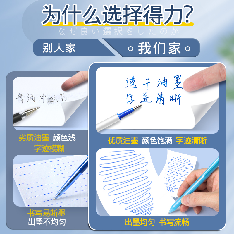 得力可擦中性笔芯可擦笔替换芯0.5mm子弹头按动中性笔芯黑色热可擦替芯蓝色晶蓝按压式小学生专用黑笔中性芯