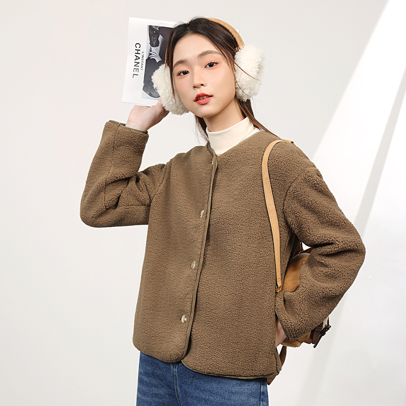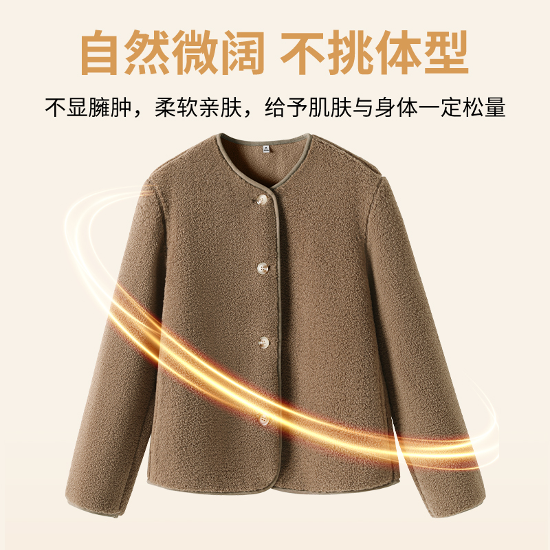 NOB真维斯麦穗绒时尚保暖外套女士2025新款冬季加绒加厚开衫上衣