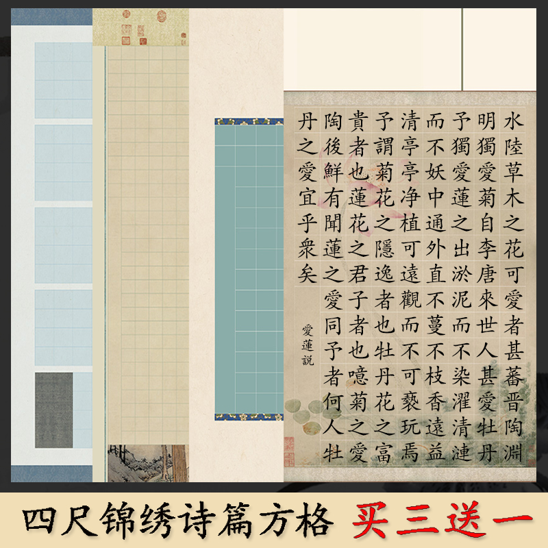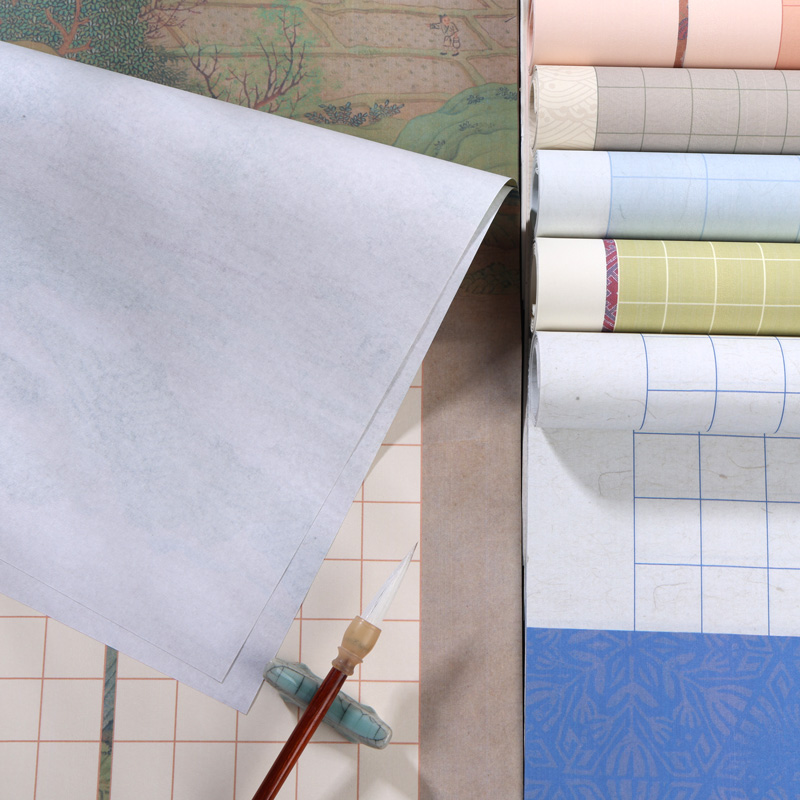 蜡染微喷宣纸方格毛笔书法作品纸四尺对开整张半生半熟琴赋陋室铭沁园春雪定风波兰亭序千字文爱莲说专用纸