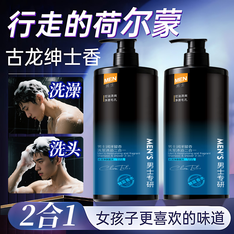洗发水男士控油蓬松古龙香洗头膏露液沐浴露套装二合一正品牌官方