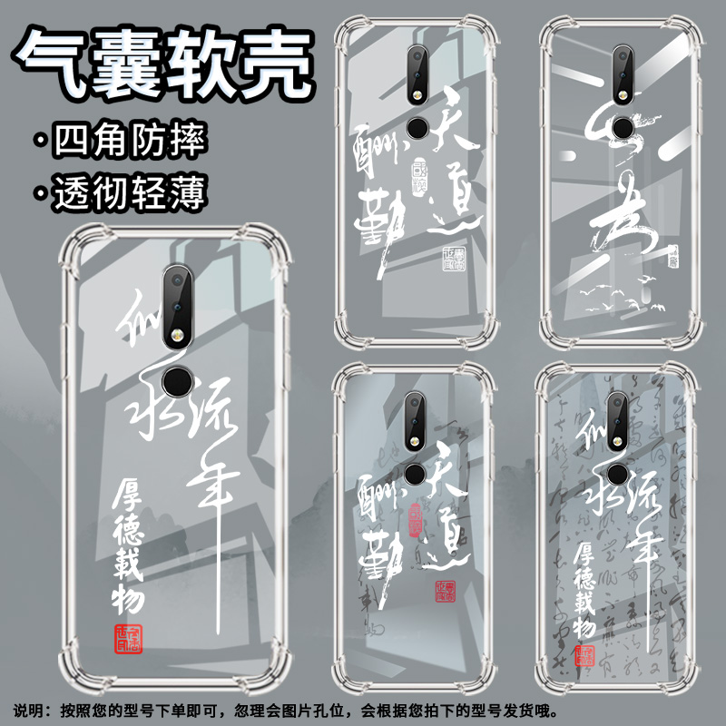 适用诺基亚X6手机壳全包边气囊壳流水似年Nokia防摔中国风时尚诺基亚X6男女款高级感潮流简约硅胶保护套