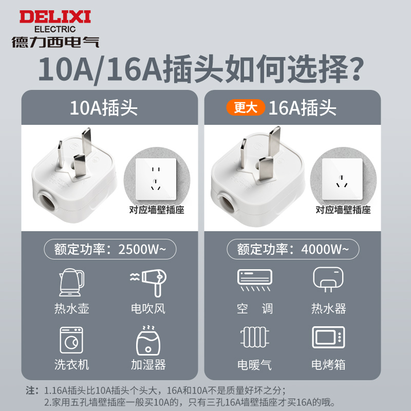 德力西插头二脚三脚10a16a大功率电源电线插头二三孔不带线三插孔