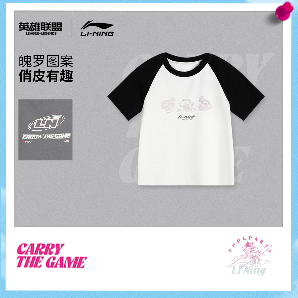 李宁 x 英雄联盟联名系列短袖T恤女士2025新款夏季休闲针织运动服