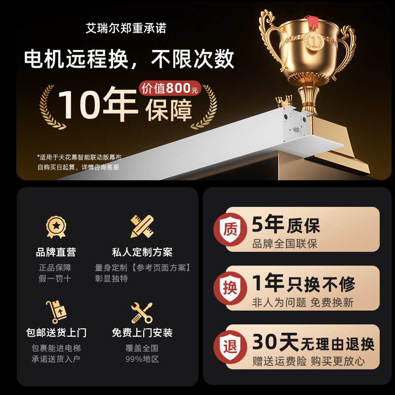 艾瑞尔拉线天花幕布家用超高清电动投影幕布嵌入式隐藏式菲涅尔遥控语音幕升降幕布100寸120寸4K投影仪幕布