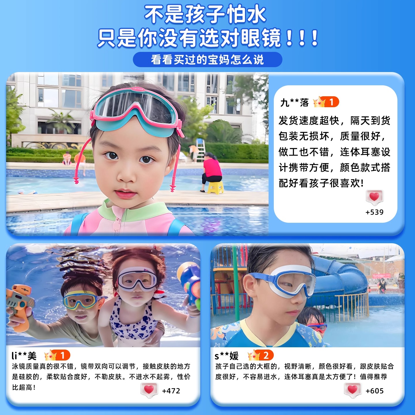 儿童泳镜防水防雾高清护目镜男女孩潜水游泳帽装备大框镜眼镜专业