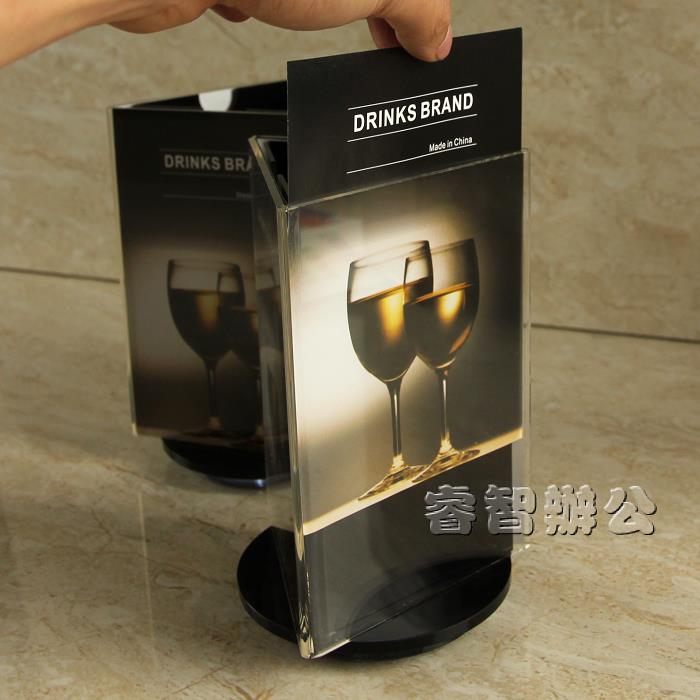 亚克力三面旋转台卡台牌桌牌旋转酒水单台签酒水牌亚克力台卡架旋转餐牌菜单展示牌三角台牌桌面立牌价格水牌